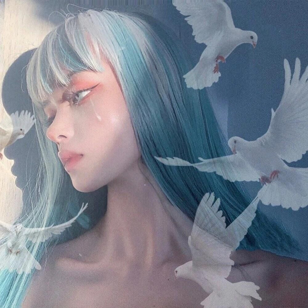 Wig color: silver gray gradient porcelain blue, silver gray gradient pink purple